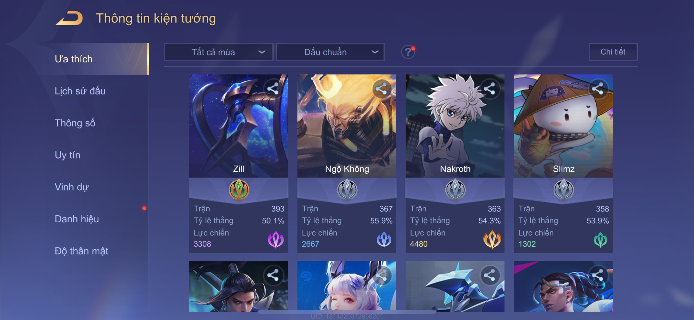 Nổi bật: Thông tin acc: