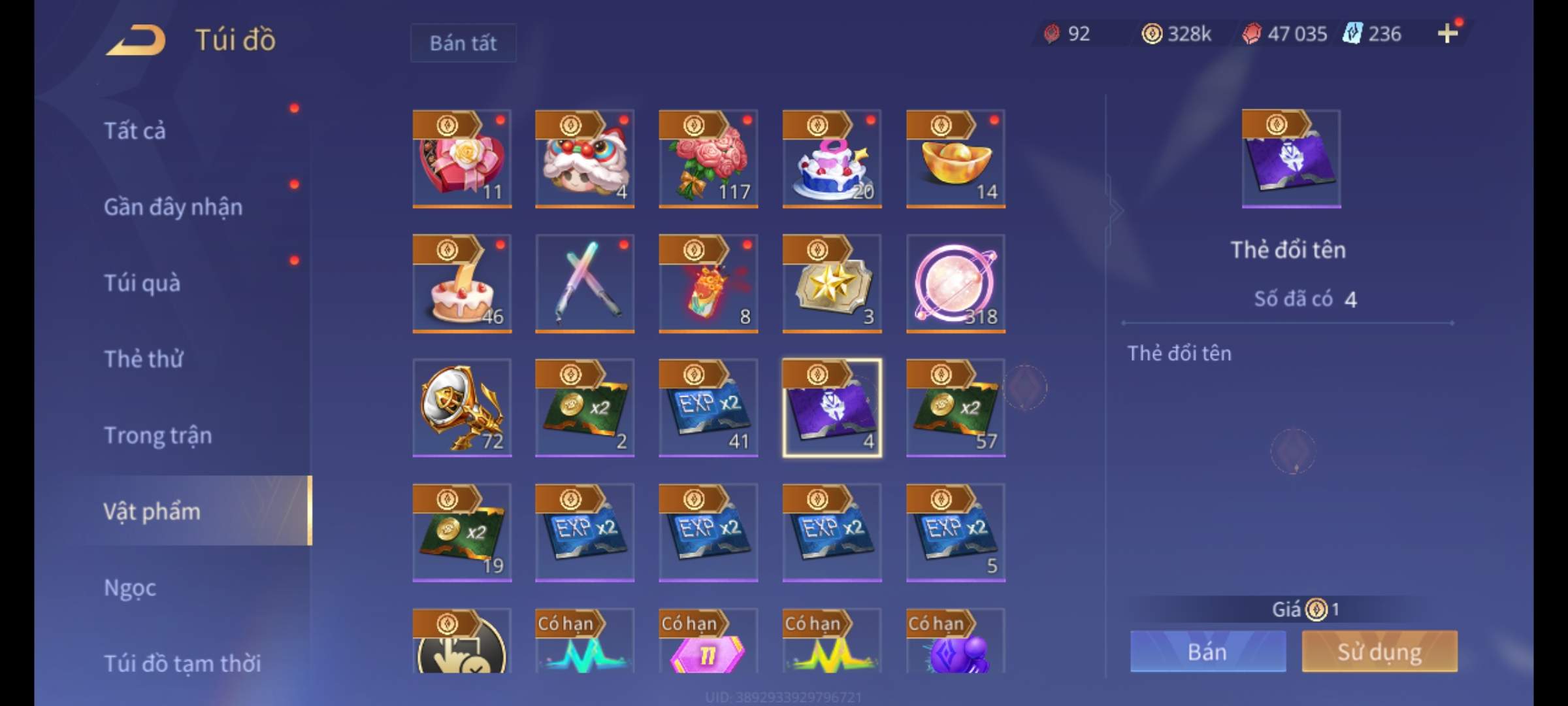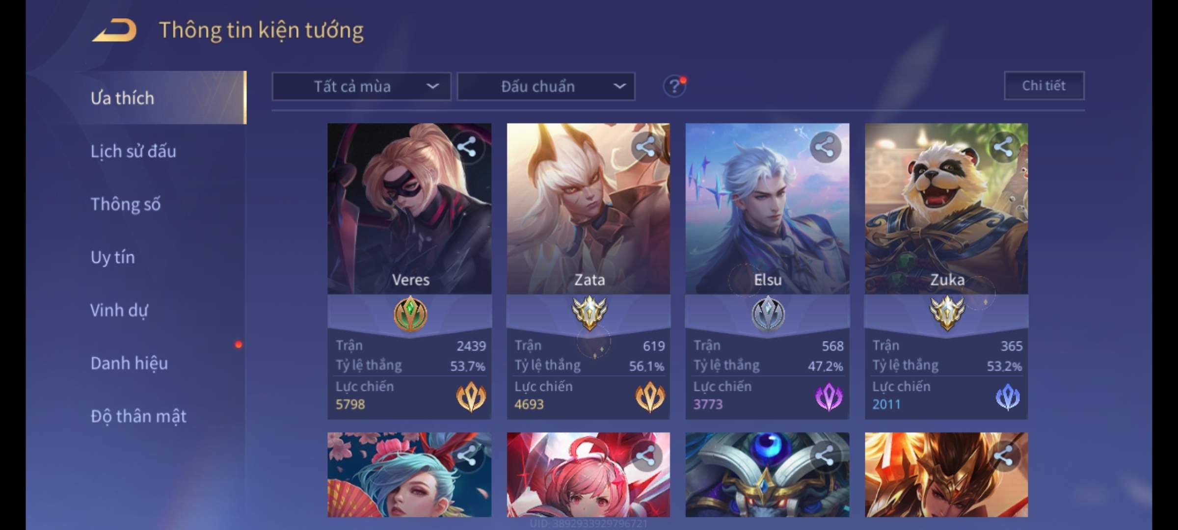 Nổi bật: Thông tin acc:
