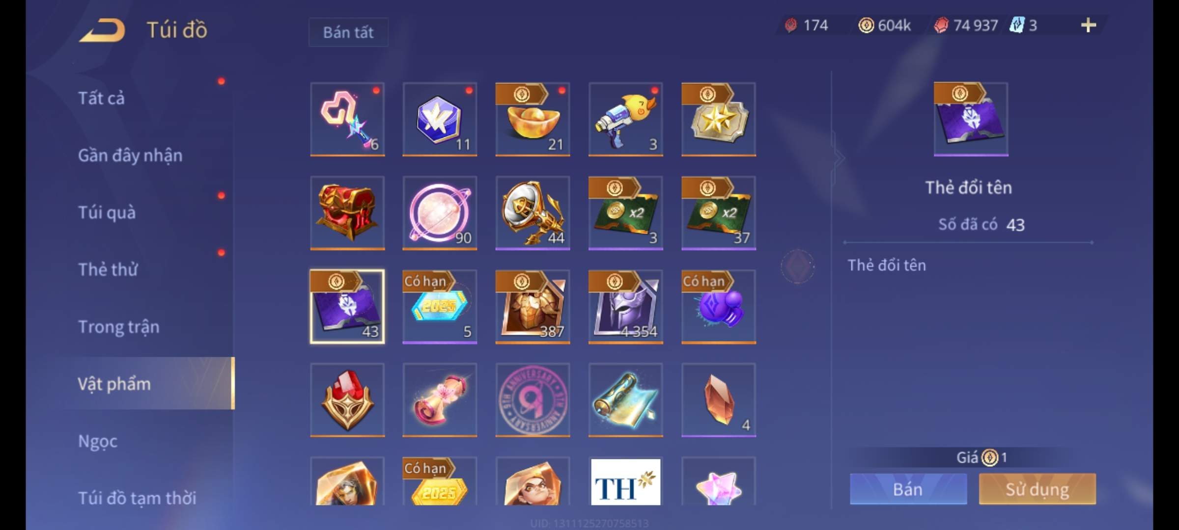 Nổi bật: Thông tin acc:
