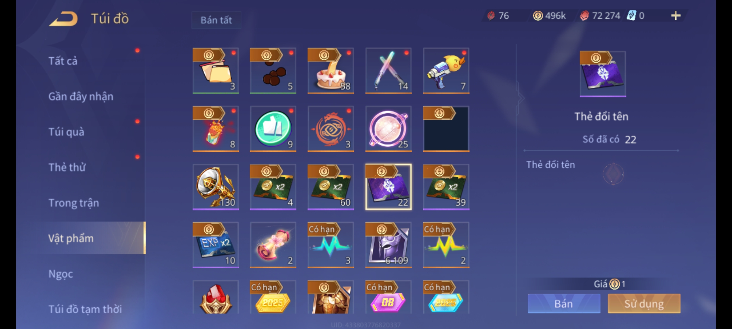 Thông tin acc: