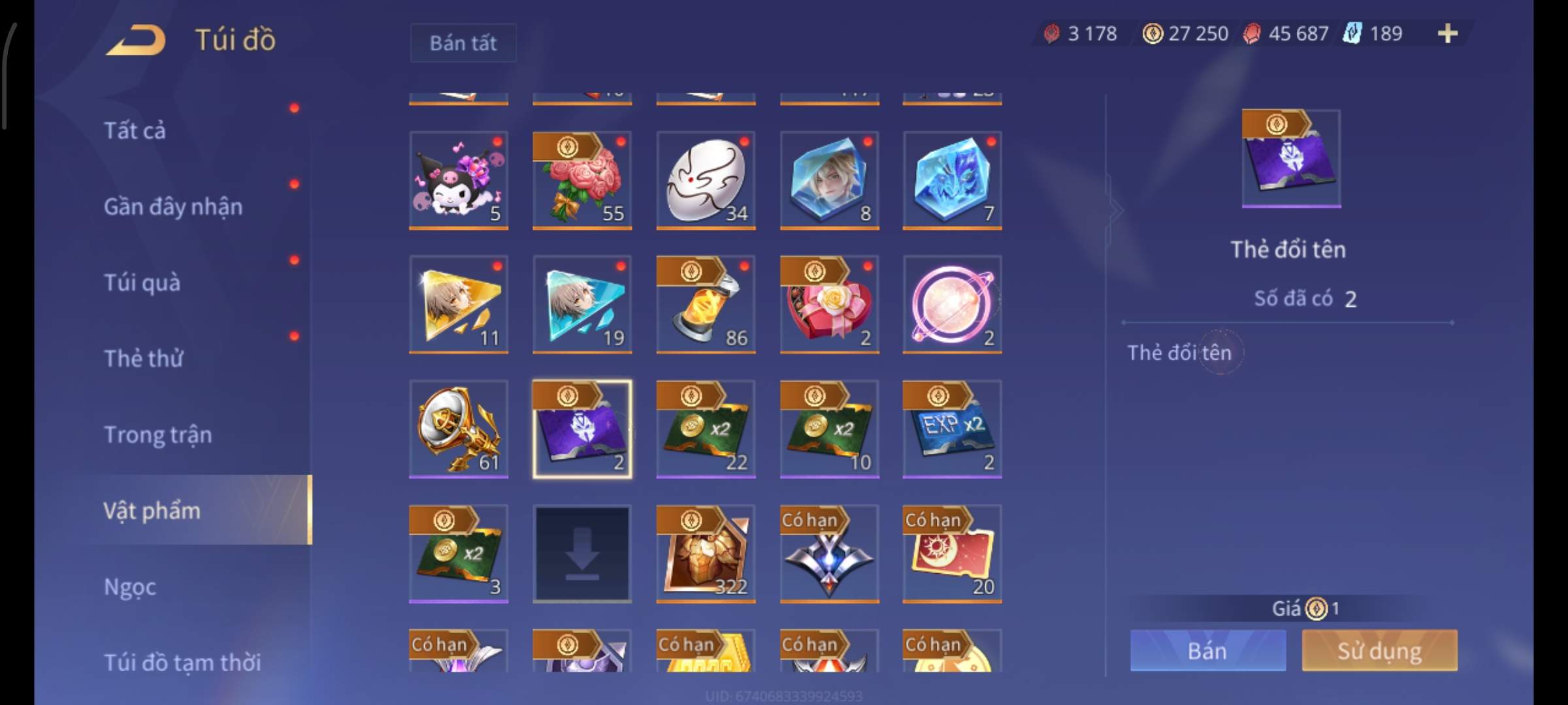 Nổi bật: Thông tin acc: