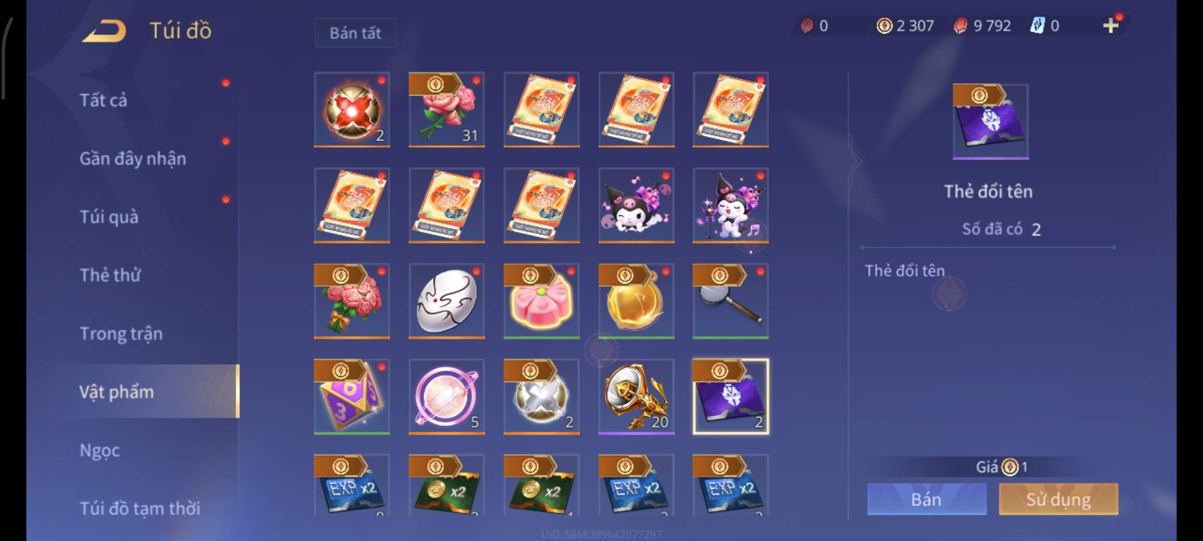 Nổi bật: Thông tin acc: