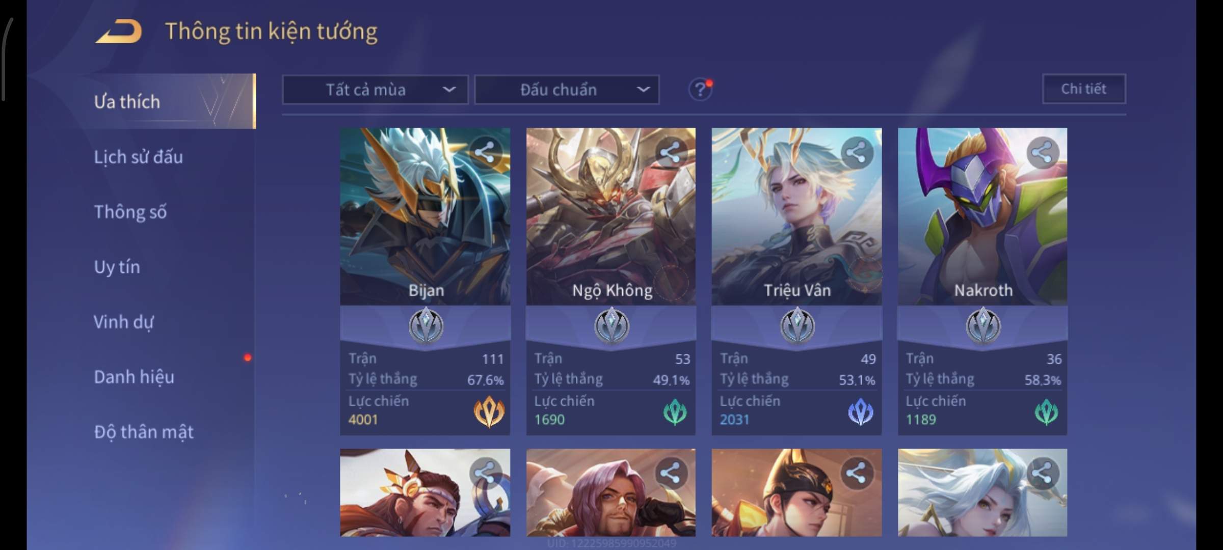 Nổi bật: Thông tin acc: