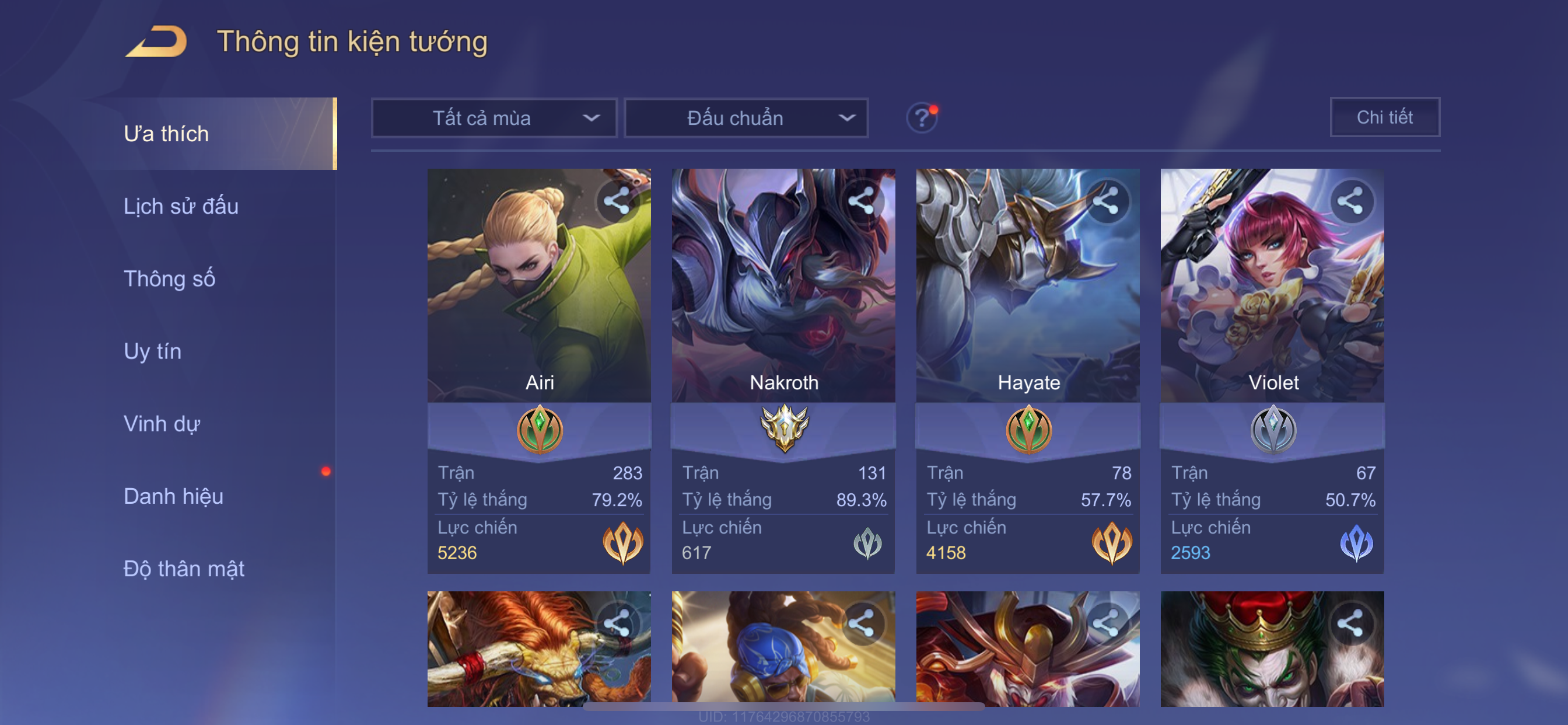 Nổi bật: Thông tin acc: