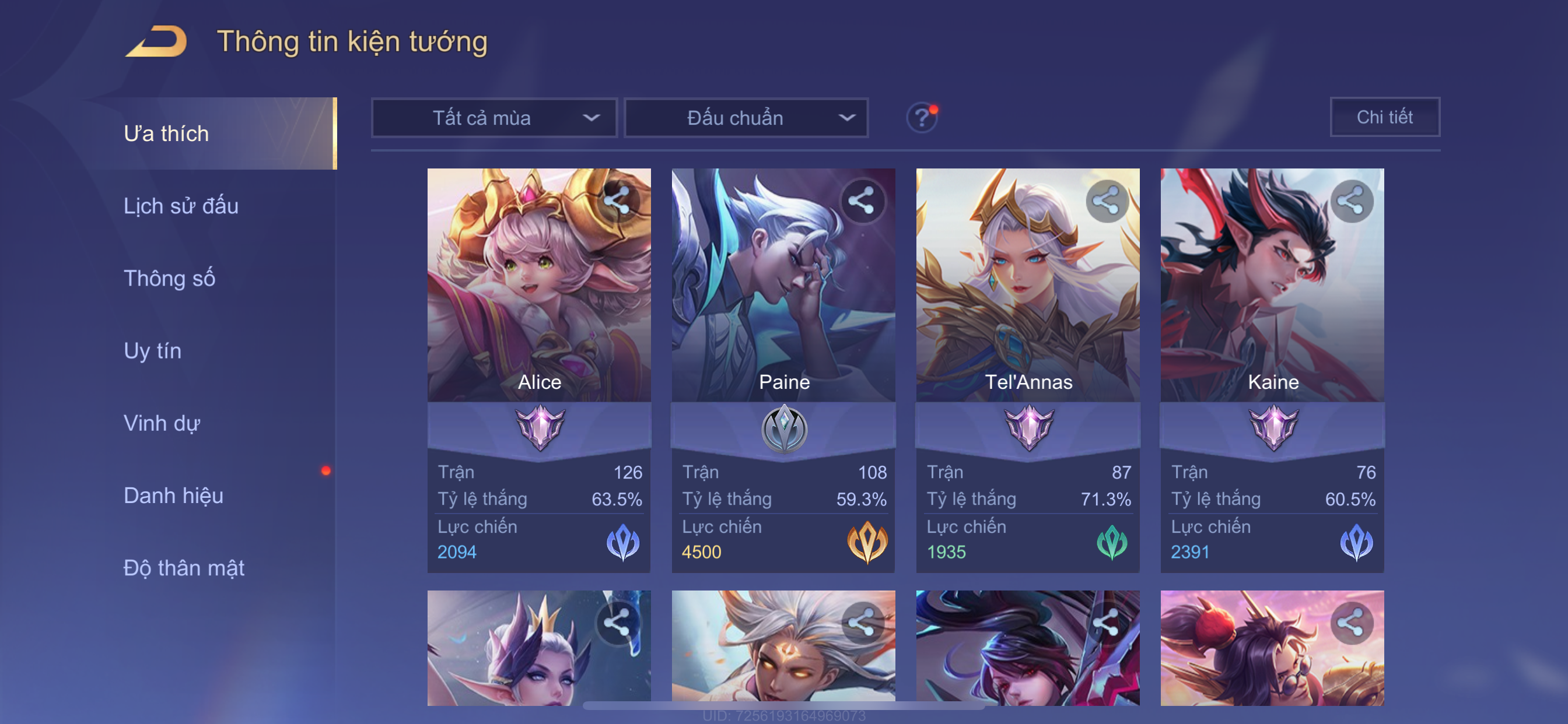 Nổi bật: Thông tin acc: