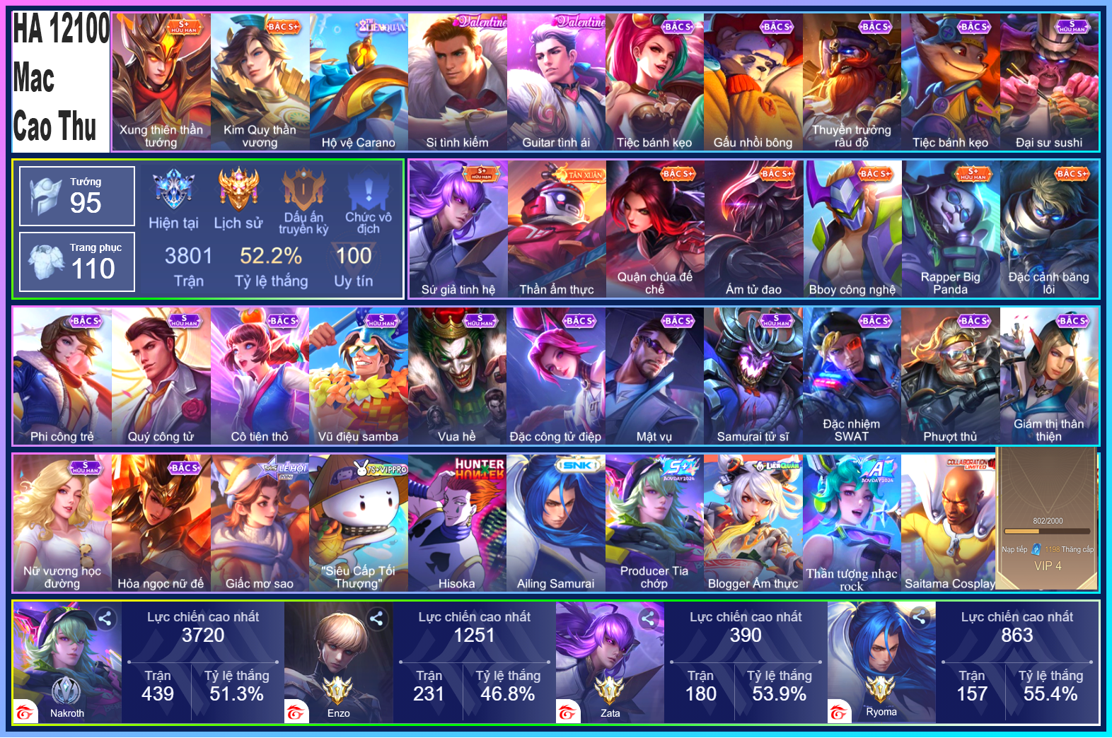 Nổi bật: Thông tin acc:+ Số điện thoại : Không+ Email/Gmail : Có ( Hỗ trợ xóa gmail )+ Số chứng minh nhân dân CCCD/CMND: Không + Kết nối với Facebook : Không+ Ngày đổi số điện thoại : đổi được số ngay