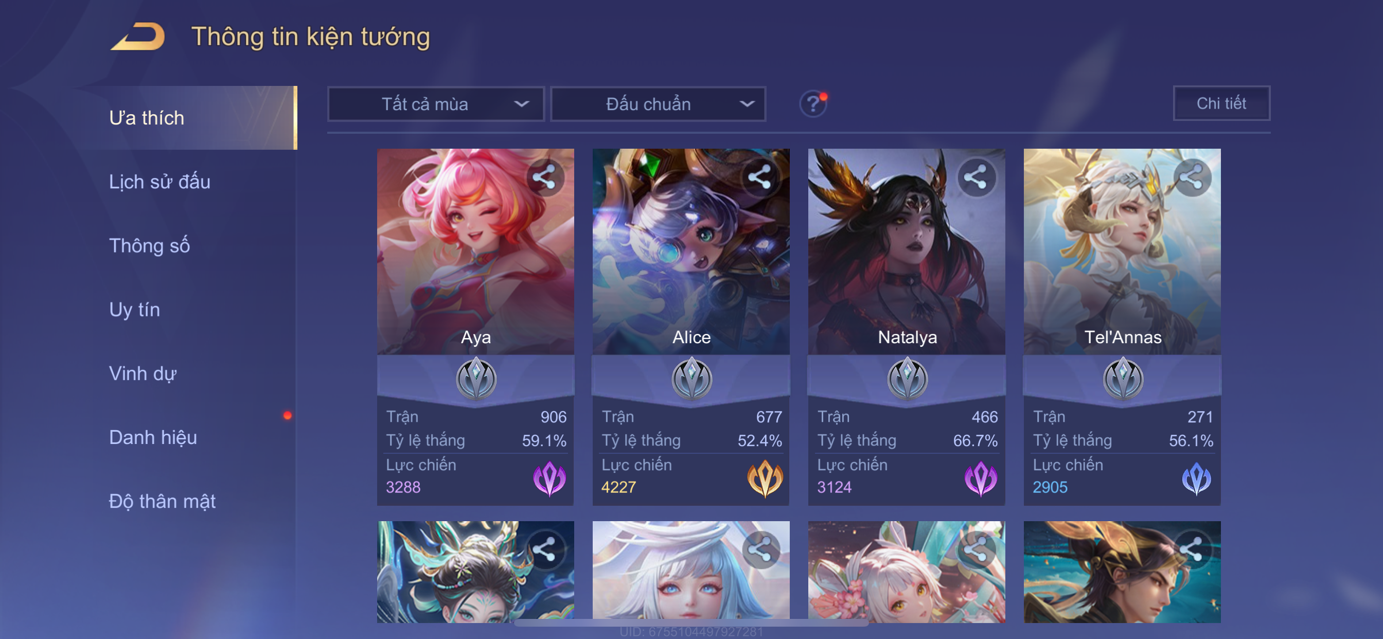 Nổi bật: Thông tin acc: