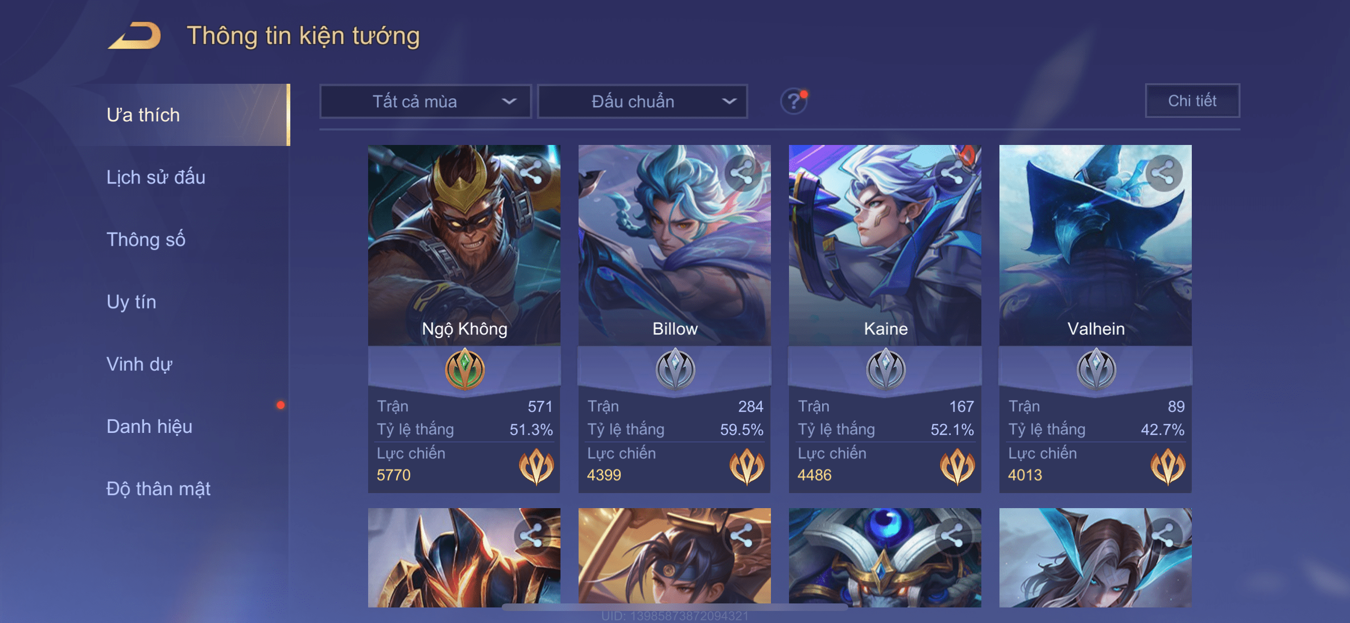 Nổi bật: Thông tin acc: