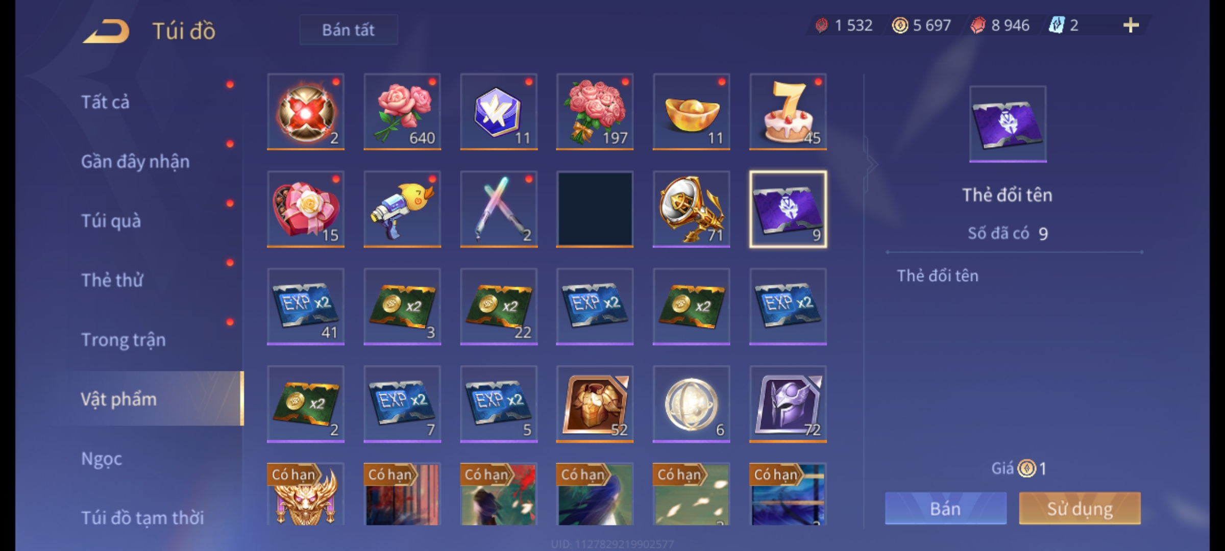 Nổi bật: Thông tin acc: