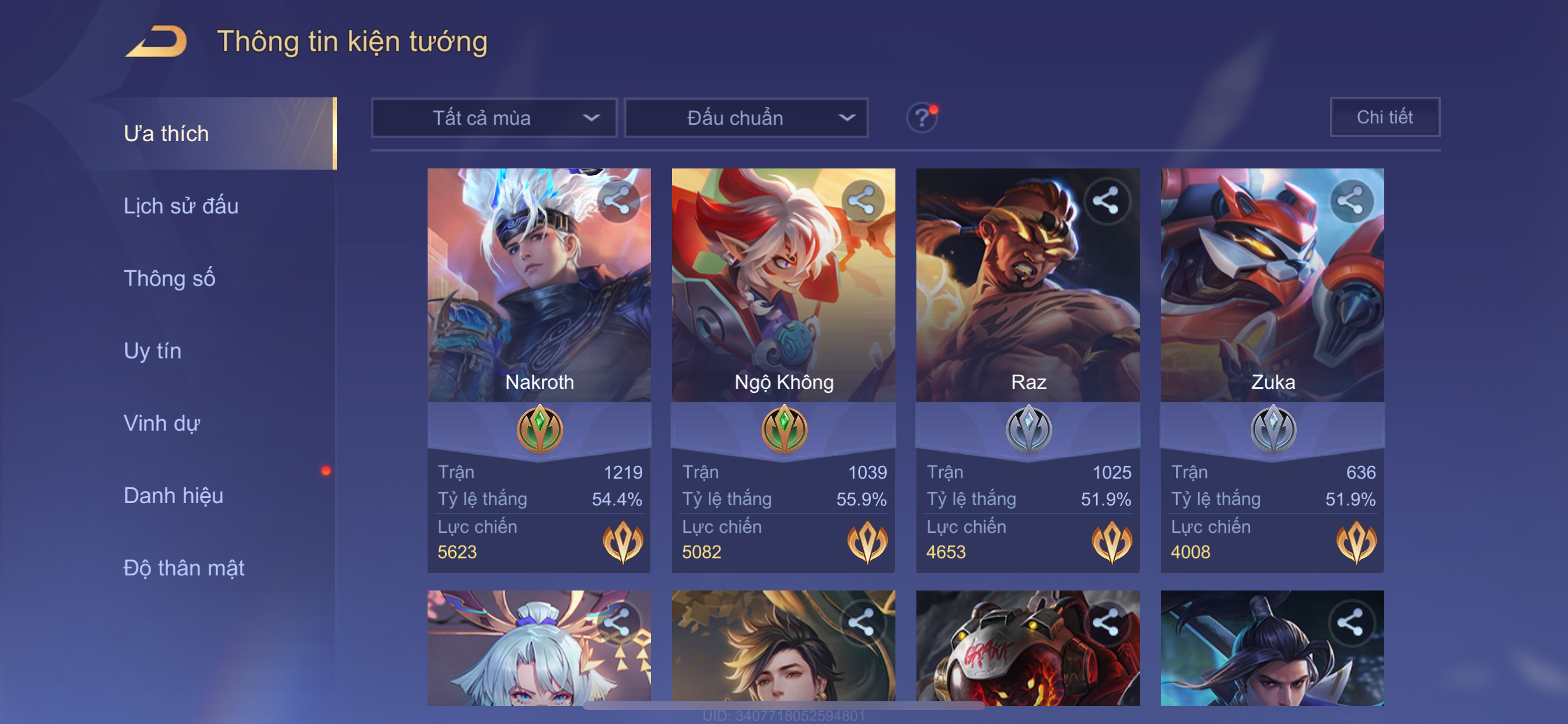 Nổi bật: Thông tin acc: