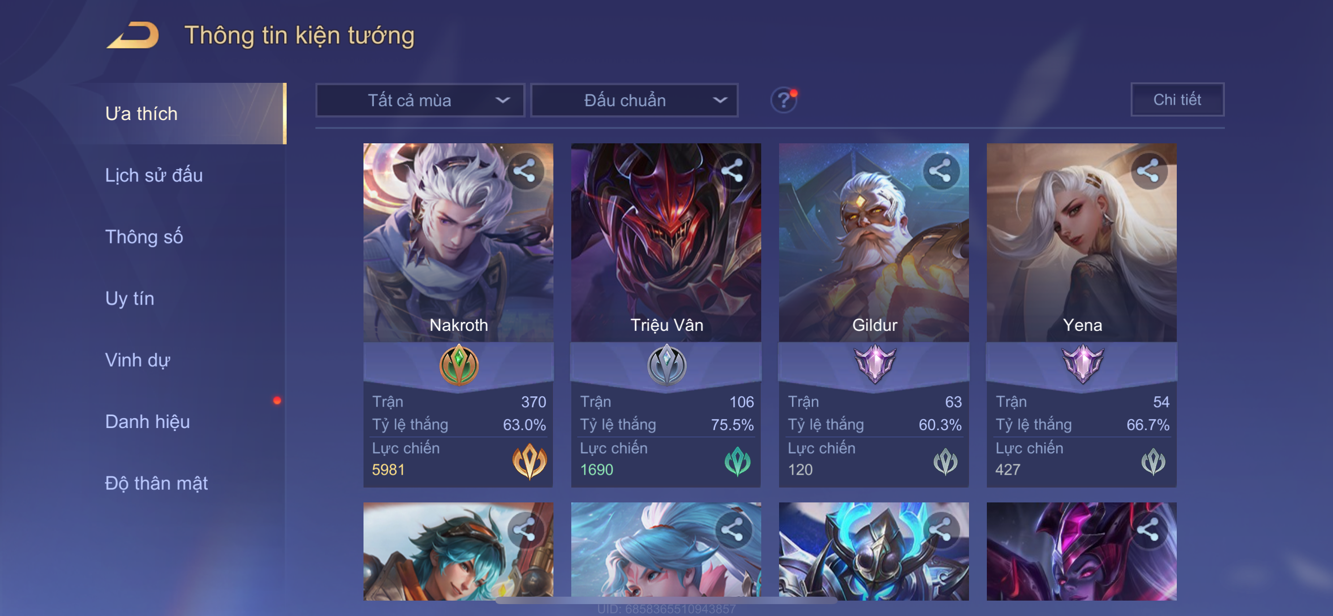 Nổi bật: Thông tin acc:
