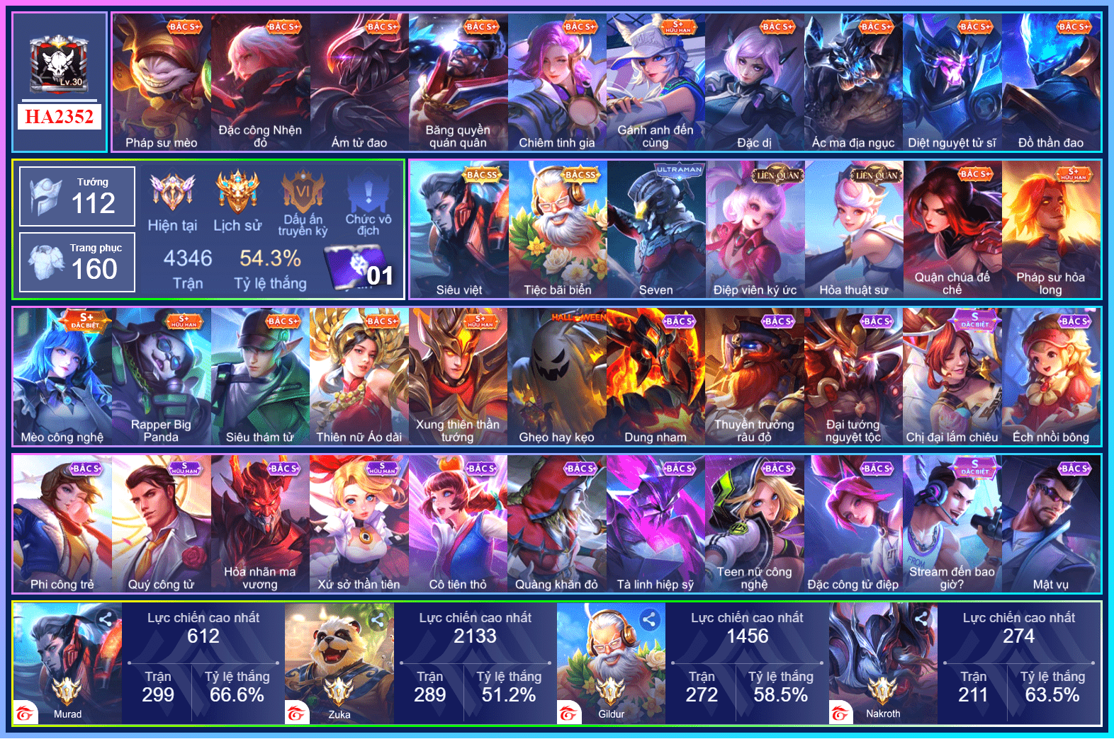 Nổi bật: Thông tin acc:+ Số điện thoại : Có - Hỗ trợ đổi số ZALO: 0988883148+ Email/Gmail : Có (không sử dụng bảo hành vĩnh viễn)+ Số chứng minh nhân dân CCCD/CMND: Không+ Kết nối với Facebook : Không+ Ngày đổi số điện thoại : 30/6/2024
