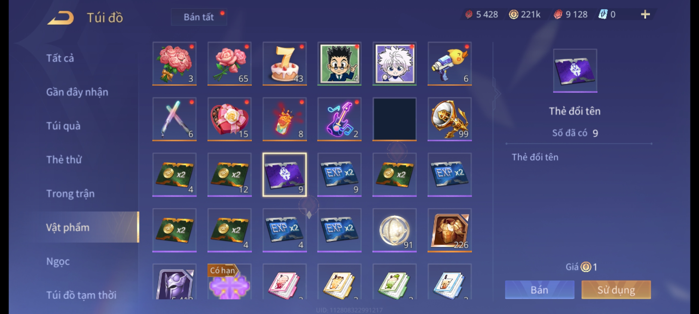 Nổi bật: Thông tin acc: