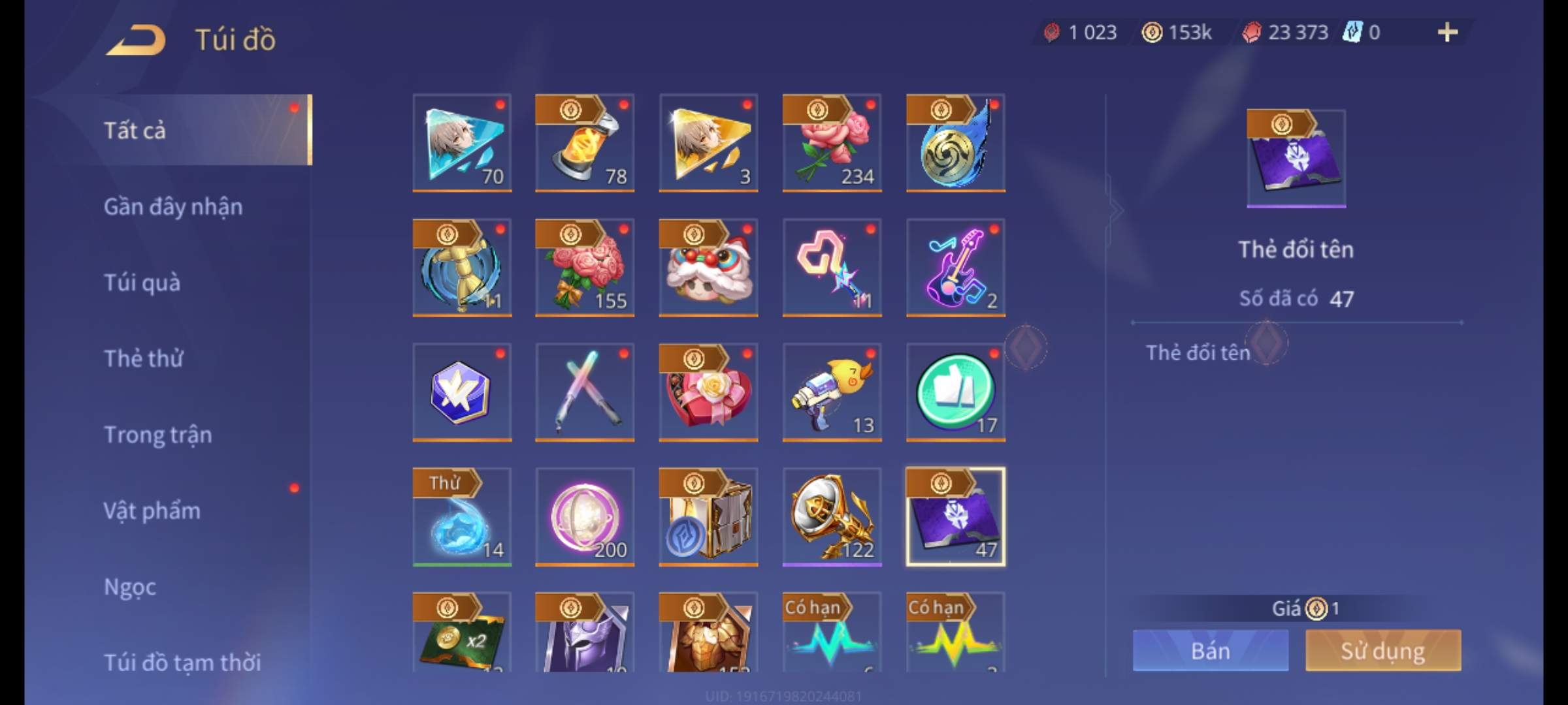 Nổi bật: Thông tin acc: