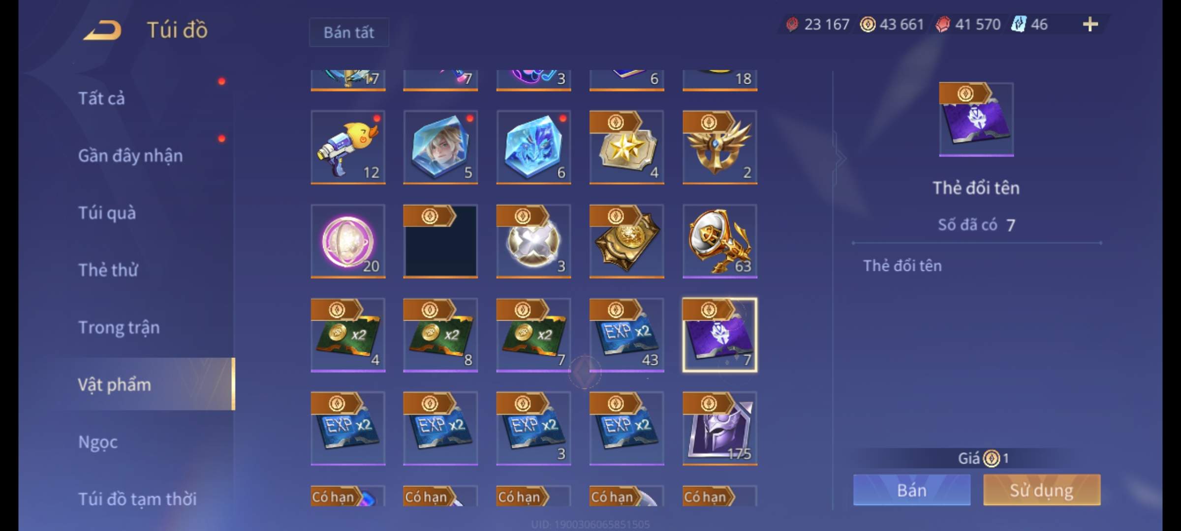 Nổi bật: Thông tin acc:
